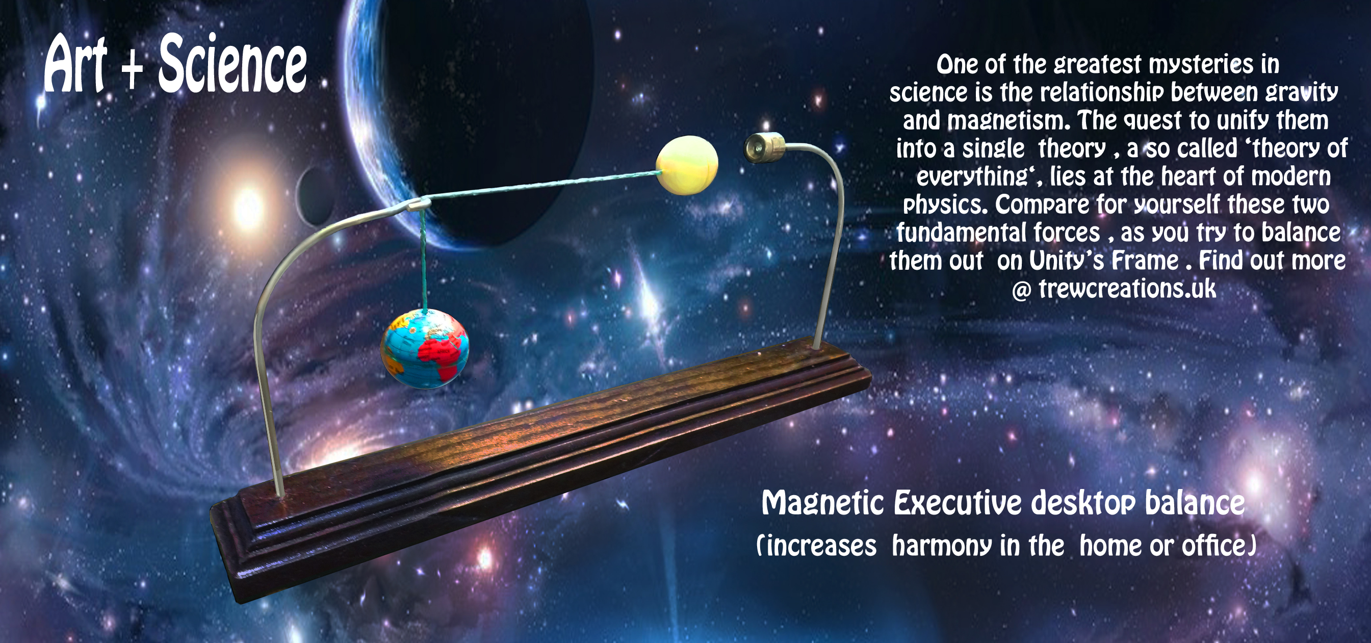 This elegant executive toy increases harmony in the home or office whilst simultaneously posing the deepest questions about the nature of space and time. Unity’s Frame offers a way to visualise the core conundrum at the heart of modern physics.. the unification of gravity with the other electromagnetic forces . A dinner party conversation starter must have!